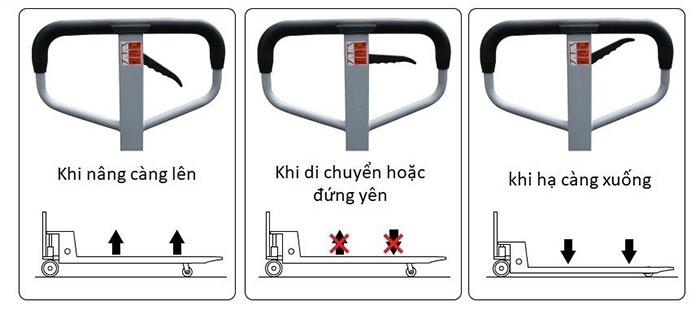 - Độ cao càng nâng thấp kết hợp với 2 bánh xe phụ phía trước càng. Giúp xe phù hợp với hầu như mọi loại pallet tại Viêt Nam, mà không sợ bị vướng khi đưa vào.